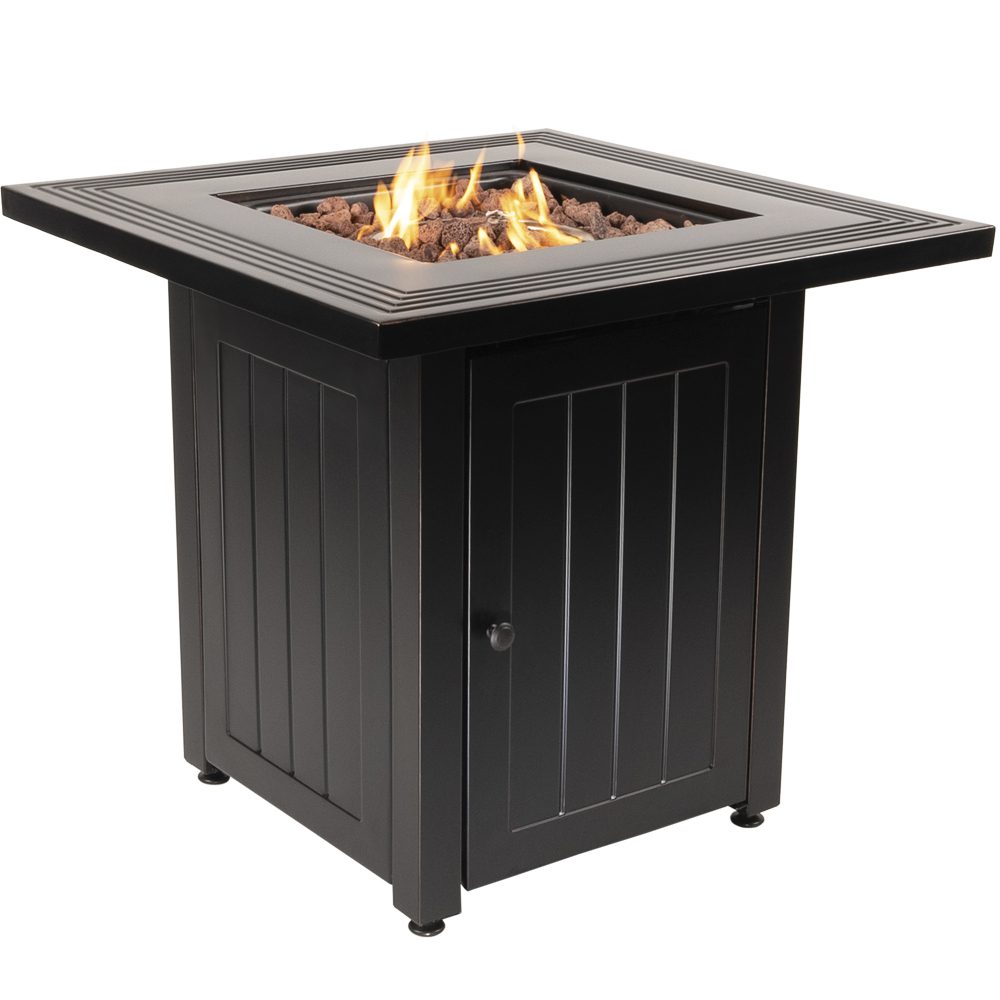 Endless Summer, 30″ Square Outdoor Propane Fire Pit with Wood Grain Printed Mantel
